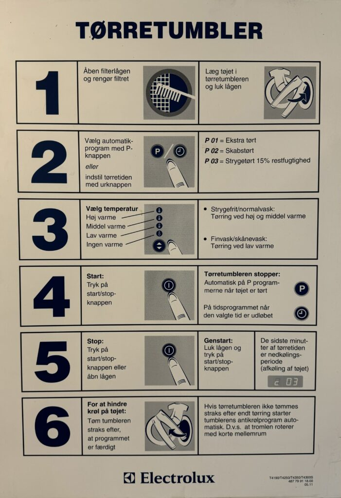 - Brug af tørretumblere skal ske umiddelbart efter vaskens afslutning. Ellers har man forladt vasketuren og må vente, til der bliver en tørretumbler ledig.